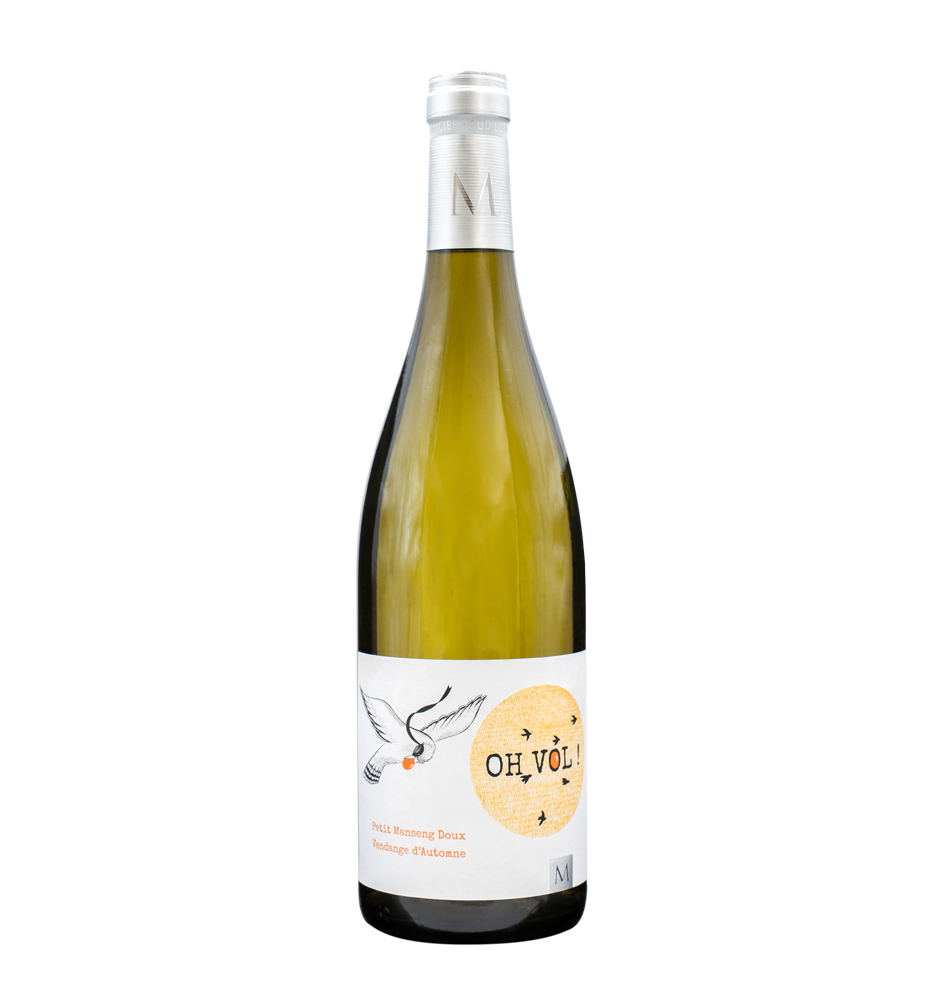 Le Petit Manseng est un cépage formidable qui s’exprime à merveille sur nos Terroirs de la Loire. Ses petites baies et sa peau épaisse facilitent les vendanges tardives. Il conserve toujours un très beau niveau d’acidité que l’on retrouve dans l’équilibre du vin. Cette micro cuvée du Domaine surprend par sa fraîcheur et ses arômes. En bouche, des notes d’agrumes, fruits de la passion et ananas se révèlent délicatement. Le sucre résiduel n’est jamais excessif grâce à une belle fraicheur sur la finale. Oh Vol ! offre une formidable aptitude à la garde grâce à son niveau de sucre résiduel et d’alcool. C’est le compagnon idéal des sommeliers qui cherchent à surprendre leurs clients au travers des accords mets/vins détonants et originaux. A déguster frais mais pas trop au risque de passer à côté de toute la complexité de cette cuvée.